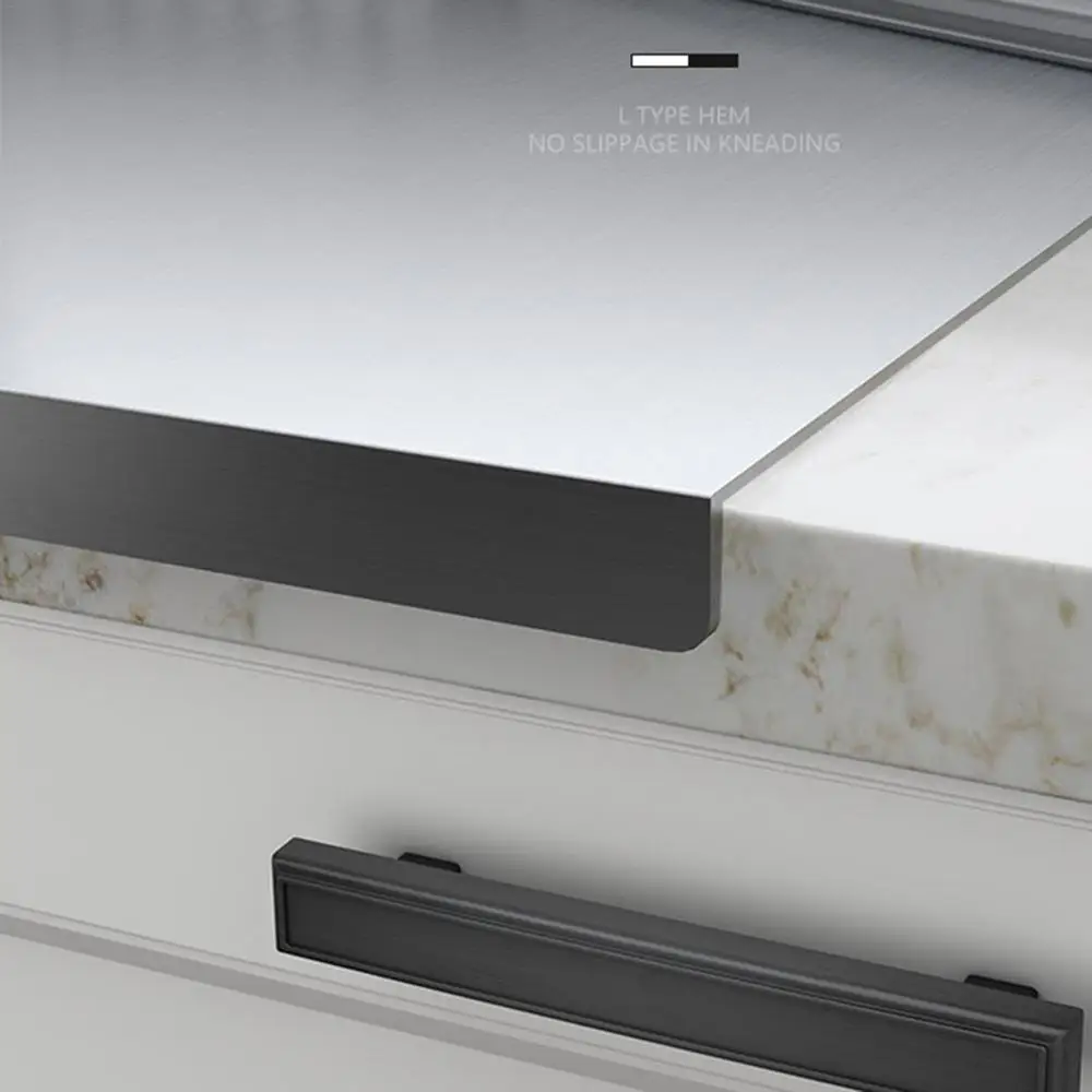 1.Stability Improved: The straight edge design and non-slip base of our stainless steel cutting board provides a stable surfaces for all your cutting needs, making it a reliable choice for any countertop.